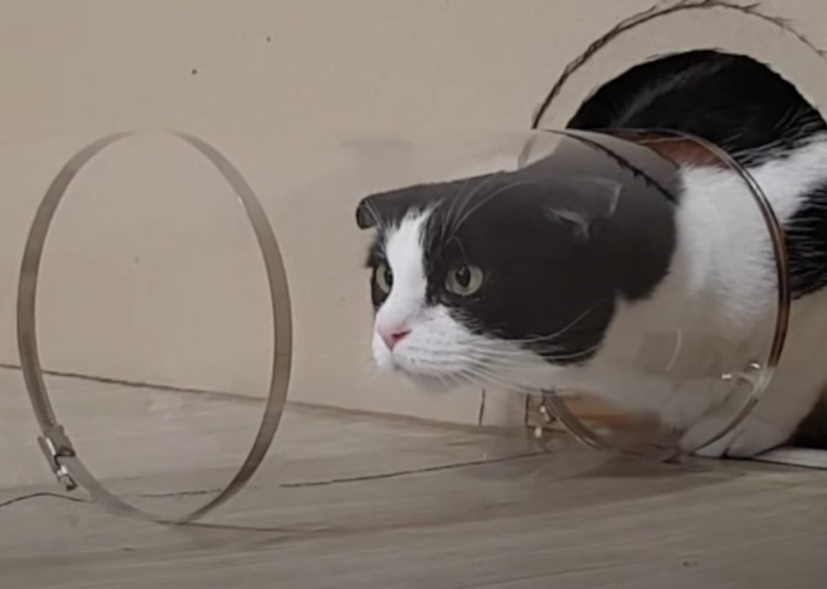猫はどこまで狭い場所を通れる?透明トンネルにチャレンジ!