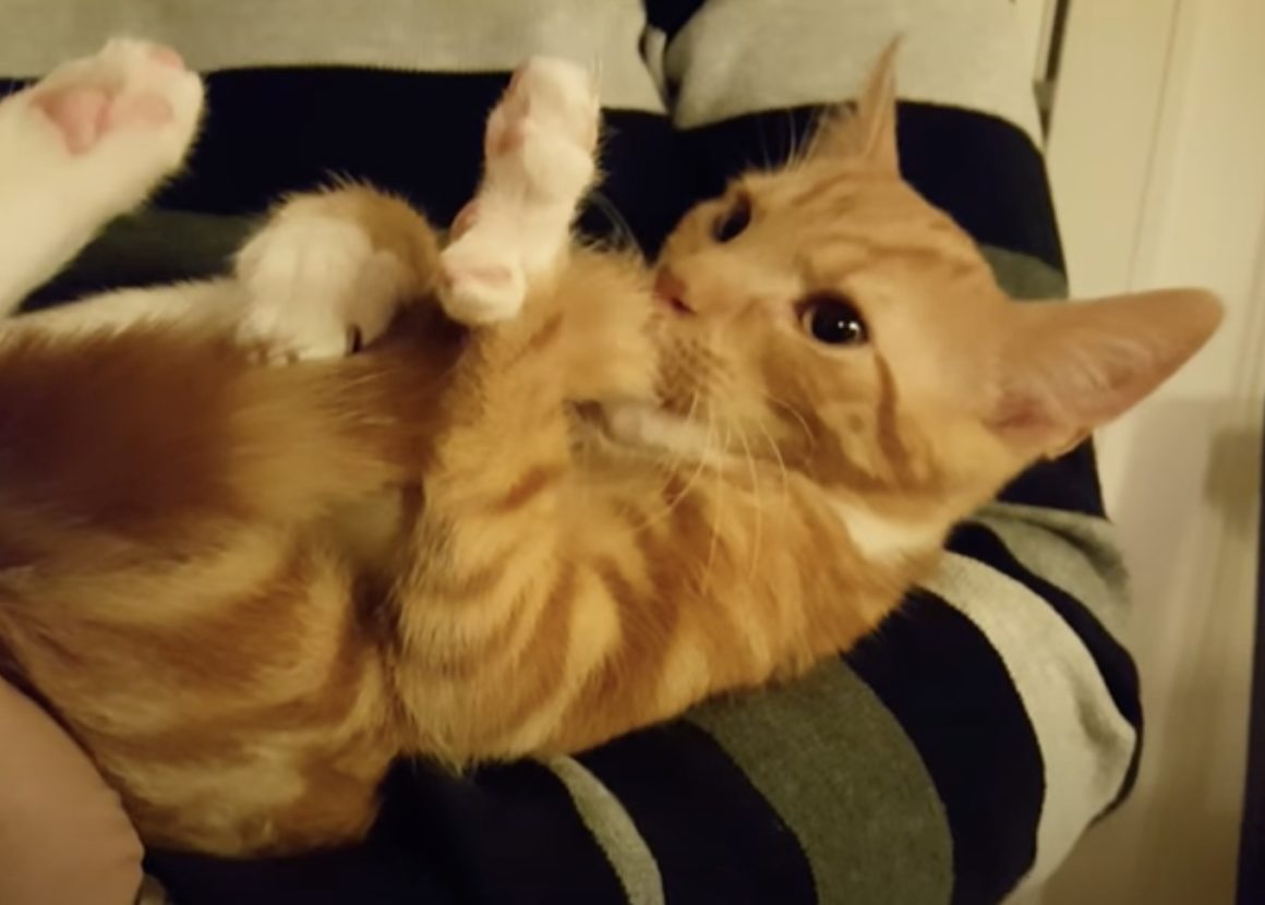 「おしゃぶり」が無いならこれで!自分の尻尾を使う猫。
