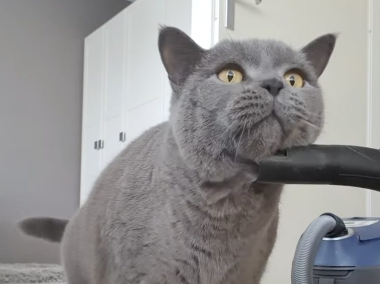 猫「はい、アゴも吸って♪」掃除機が大好きすぎる猫。