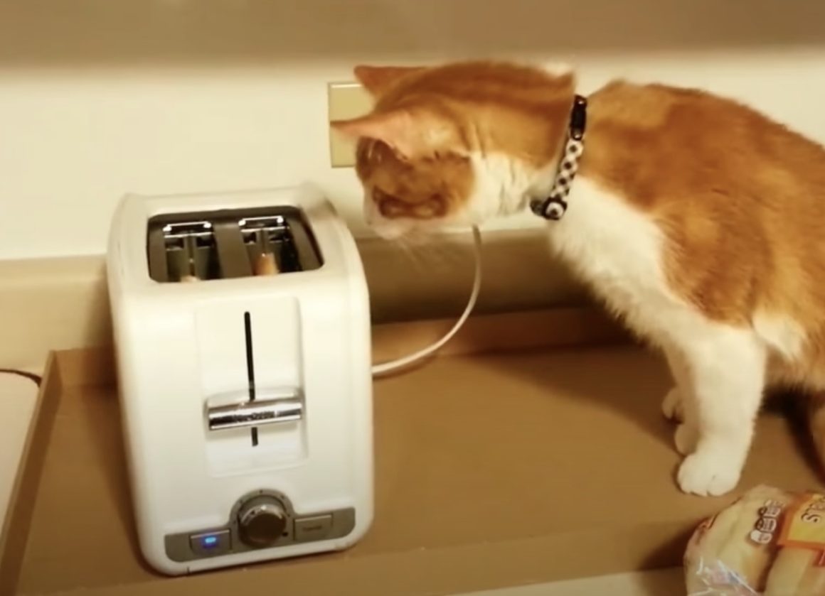 いきなり飛び出す危険なやつ?猫vsトースター