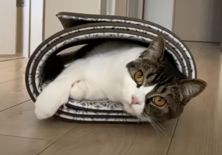 穴を見つけたら飛び込まずにはいられない猫。
