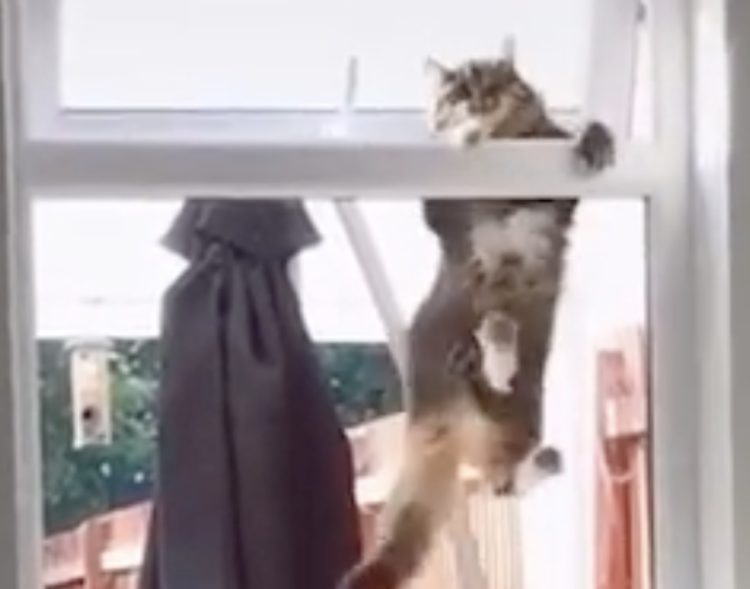 換気のために少しだけ、 窓を開けていた撮影者さん。 何か気配を感じると思ったら、 窓の外に猫の姿が! そのまま窓のフチに手をかけて 落ちそうになりながらもよじ登る猫さん。 まるで懸垂をしているようです。 落ちてたまるか〜!と必死で部屋に侵入しよ... -