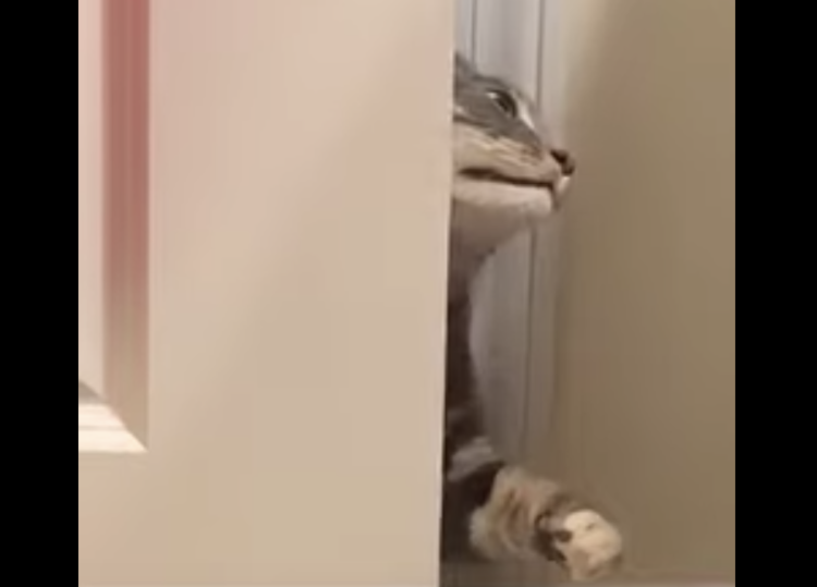 バスルームに入りたい猫、なぜかいつも隙間から変な顔で…