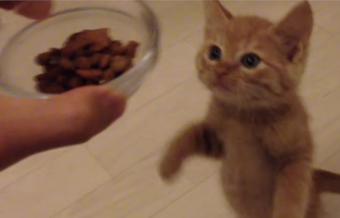 食べ盛りの茶トラ子猫のひろしくん。 飼い主さんが小さな小皿に カリカリご飯を用意してくれると 待ちきれなくって立ち上がって 「早くはやく〜!」とミャーと鳴いて催促。 餌皿を置いてあげると、 元気に食べ始めますが、 慌てん坊のため、お皿の周りにポ... -