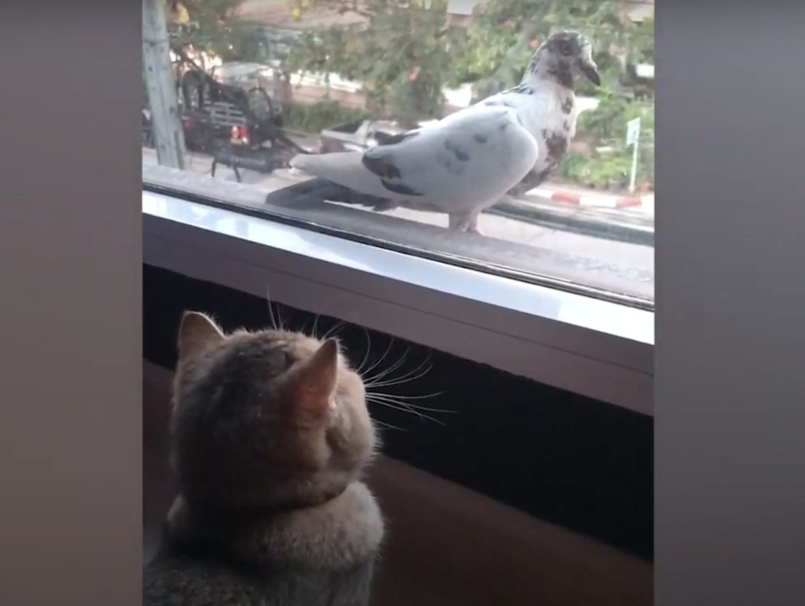 「鳥さんがいるよ!」鳩と遊びたい猫、ガラス越しにアピールするけど…