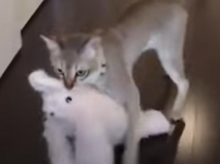 ぬいぐるみが歩いてると思った!お気に入りを手放さない猫。