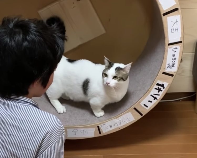 ハムスターのように中に入って 走るとくるくると回る 猫さん用のキャットホイール。 本当は自分で走ってから動かすのですが、 こちらの猫さんは、なぜか 自分で回さずに、ご家族に 猫「ねぇ、回して♪」と可愛く目でお願い! 元々は自分で回していたそうな...
