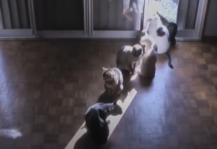 ベストポジションを求めて…日向ぼっこのために整列する猫ちゃん。