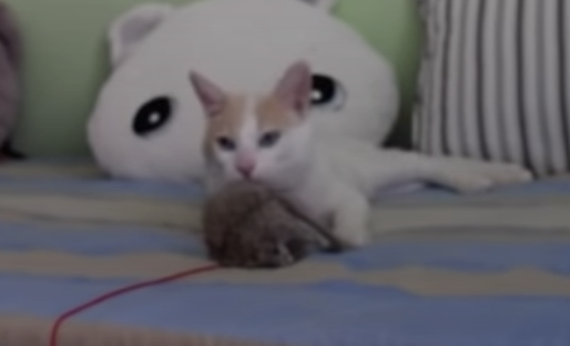 ピンクの棒の先に、フワフワのネズミがついた 猫じゃらしがお気に入りの猫さん。 この日もベッドの上で、 飼い主さんに遊んでもらっています。 ジャンプして捕まえようとしたり お尻をフリフリして飛びかかったり、 飽きることなくとっても楽しそうです。 ... -