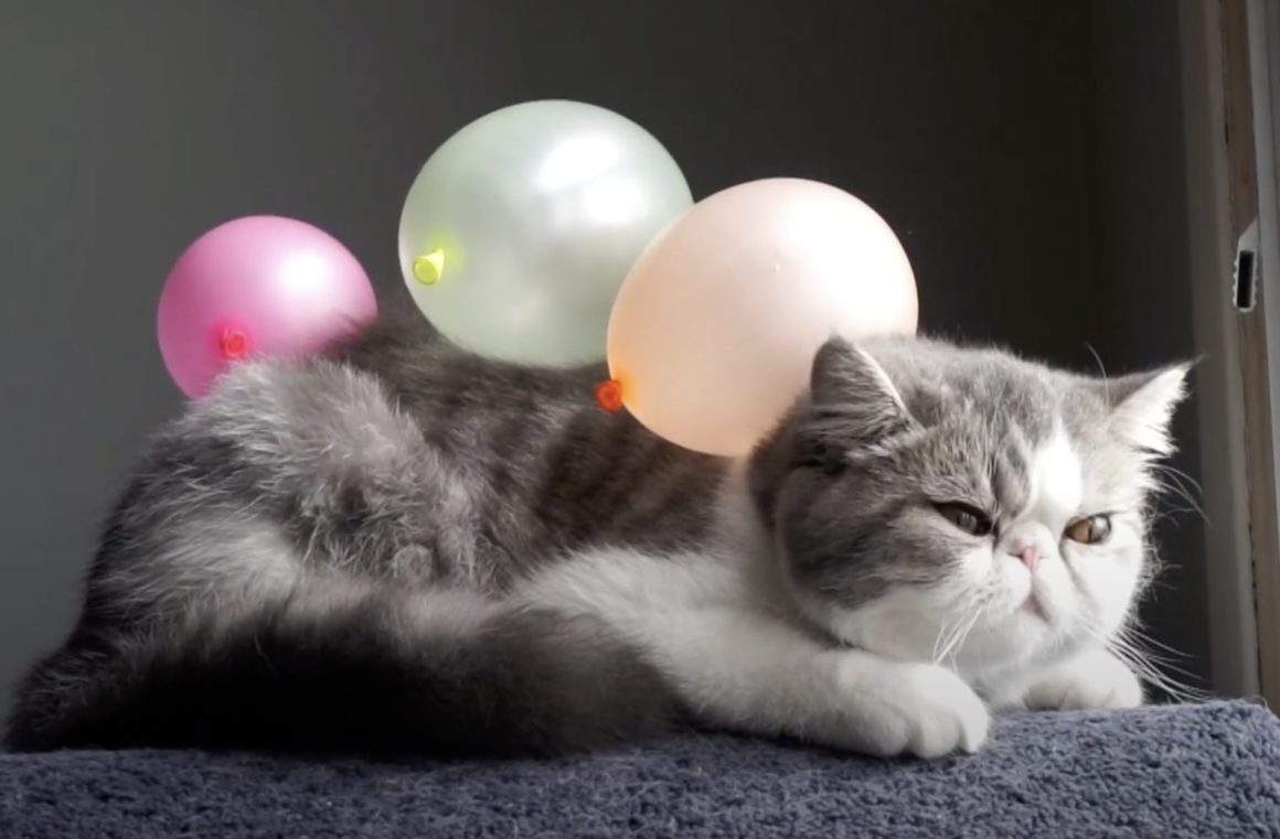 窓の外の景色を眺めている猫さん。 ふと後ろを振り向くと、ん? 飼い主さんが風船を持ってきました。 一体何をするのかと思ったら、 猫さんをナデナデしながら、 風船を背中に擦りつけています...。 ツルツルした風船の感覚が気持ちいいのか 何をされてい... -