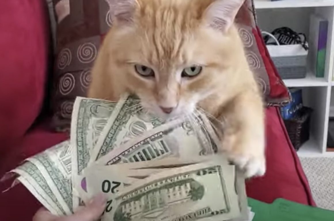 YouTubeで大活躍している猫さん。 いつも撮影おつかれさま〜! こんなに稼げたよ〜!と 飼い主さんが猫さんに札束を見せますが 猫さんはちょっと渋い表情で お金を数えるように、1枚、2枚...。 思っていたよりも少なくて 不満だったのでしょうか? あんま...