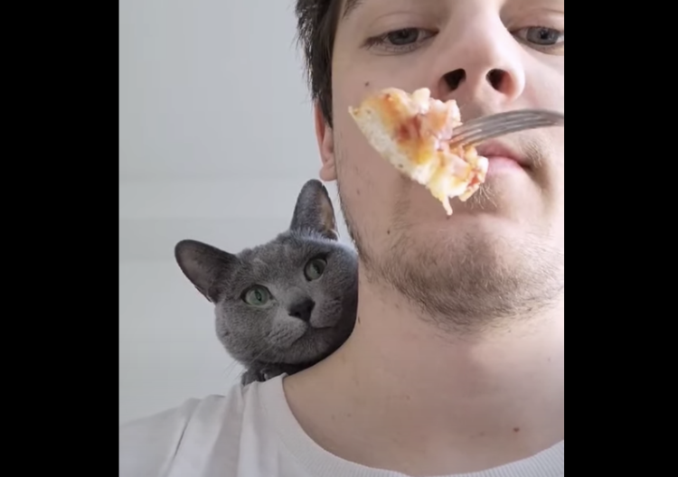 食事をしている男性の肩に 可愛くちょこんと乗っている猫さん。 「一体何を食べているのかニャ」と じーっと食事している姿を 監視しているようです。 男性が口もとに食べ物を運ぶたびに、 じーっ! 絶対に目を離さない! こんなに近くでガン見されると 非... -