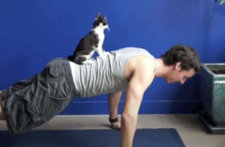 パーソナルトレーニャー?猫さんと一緒に筋トレしたら楽しそうだった。