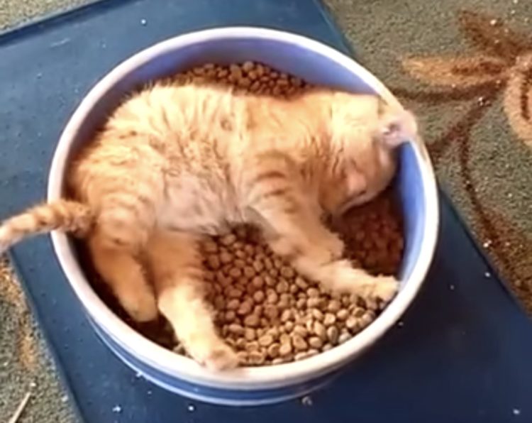 たまに、起き上がってゴハン食べるのが面倒だったり、 ゴロンと寝ながらオヤツ食べたい時ってありますよね〜。 まだまだ小さい茶トラの子猫さんは、 寝たい、でも食べたい、ぐうたらしたい!が一度にできる方法を見つけました。 ゴハン用の器の中にすっぽ... -
