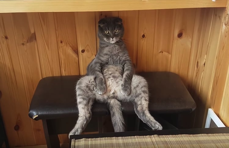 ある日飼い主さんが様子を見に行ってみると… ?! すごい体勢で座っている猫さんが。スコ座りともちがう、 貫禄のありすぎる姿…全然動じない感じも渋いです。 ひとり部屋の端っこでくつろいで、何か考え事でもしてたのかな? とっても大人な猫さんなので... -