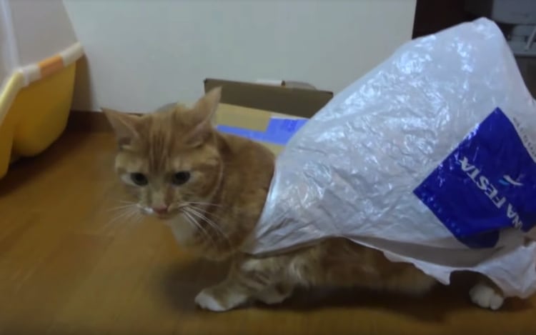 抜けニャくなっちゃった?!ビニール袋にハマった猫。
