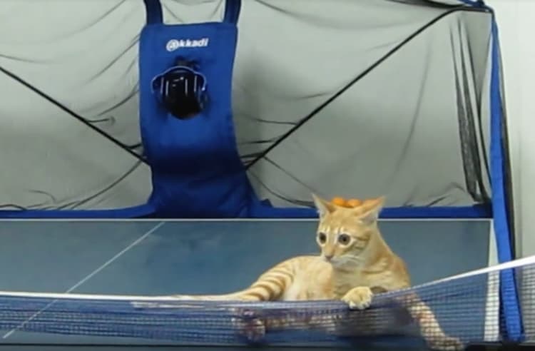 卓球台の上でくつろぐ猫さん。 ピンポン球が飛んでくると、 素早く狙いを定めて スマッシュ!! 見事に打ち返します。 見事な反射神経、さすが猫さんです。 [youtube https://www.youtube.com/watch?v=2U4t6oDkiLg?rel=0&controls=0&showinfo=0&w... -