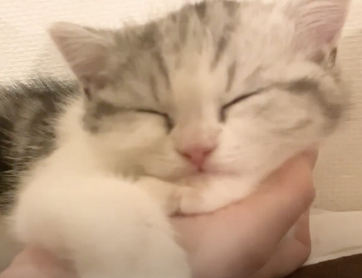 すっぽりちょうどいい♪ 飼い主の手のひらで眠る子猫。