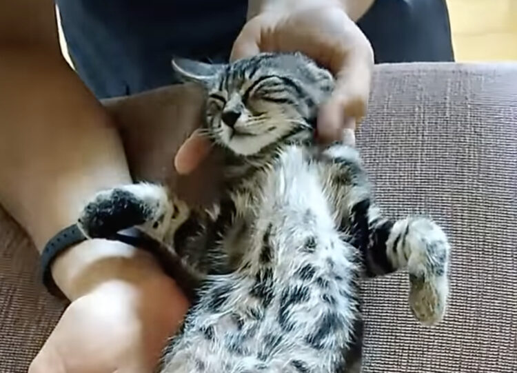 安心しきってる♪ 抱っこされても起きない子猫。
