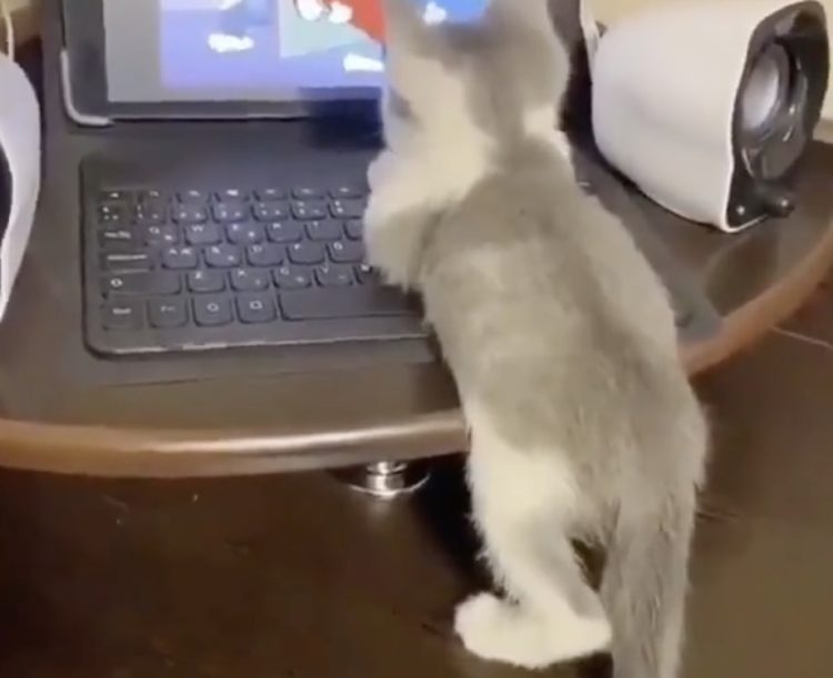 キーボードをポチポチ! 子猫がオンラインゲームに参加?