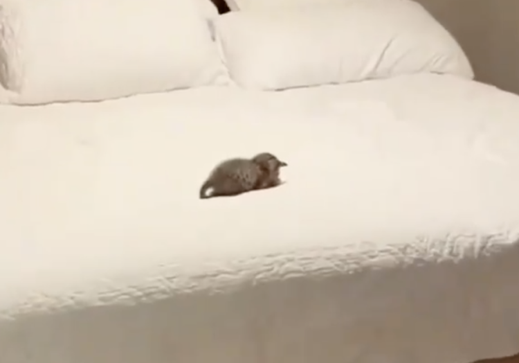 人間用の、大きな大きなベッド。 そこにポツンと、なにやら黒い影。 カメラを持って近づいてみると... 手のひらくらいのサイズの 小さな子猫さんが落ちていました! 遊び疲れて眠っちゃったのかな? 飼い主さんがナデナデすると、 「寝ちゃってたよ〜」と... -