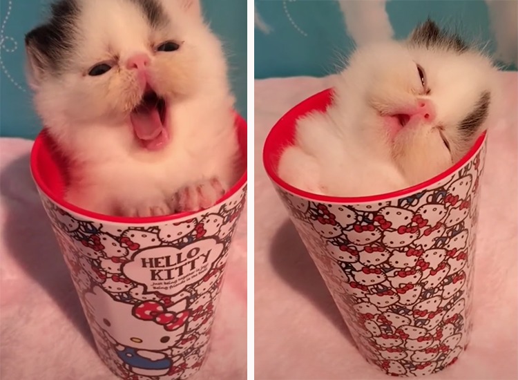カップに入ってスヤスヤ♪どこでも寝れちゃう子猫さん。