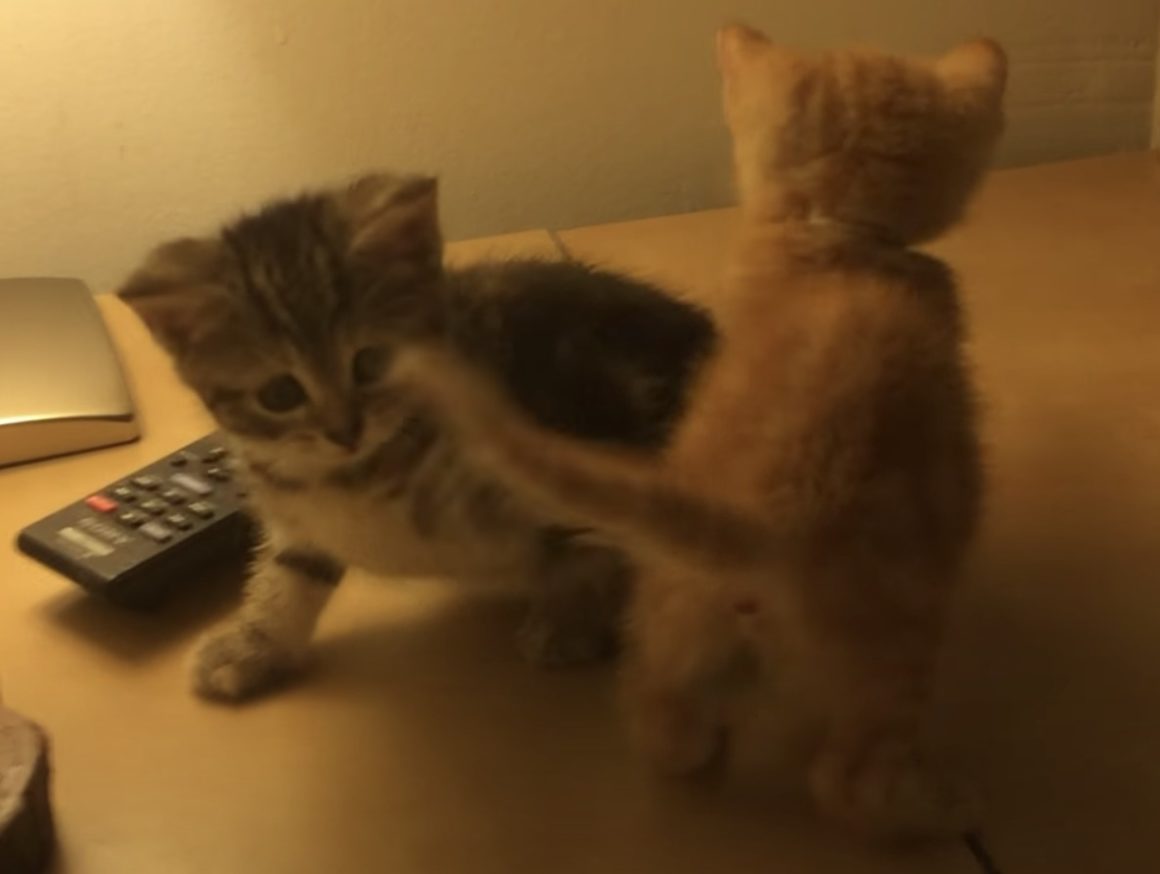 お互いの体のアレが気になる!ぐるぐる回り続ける子猫たち。