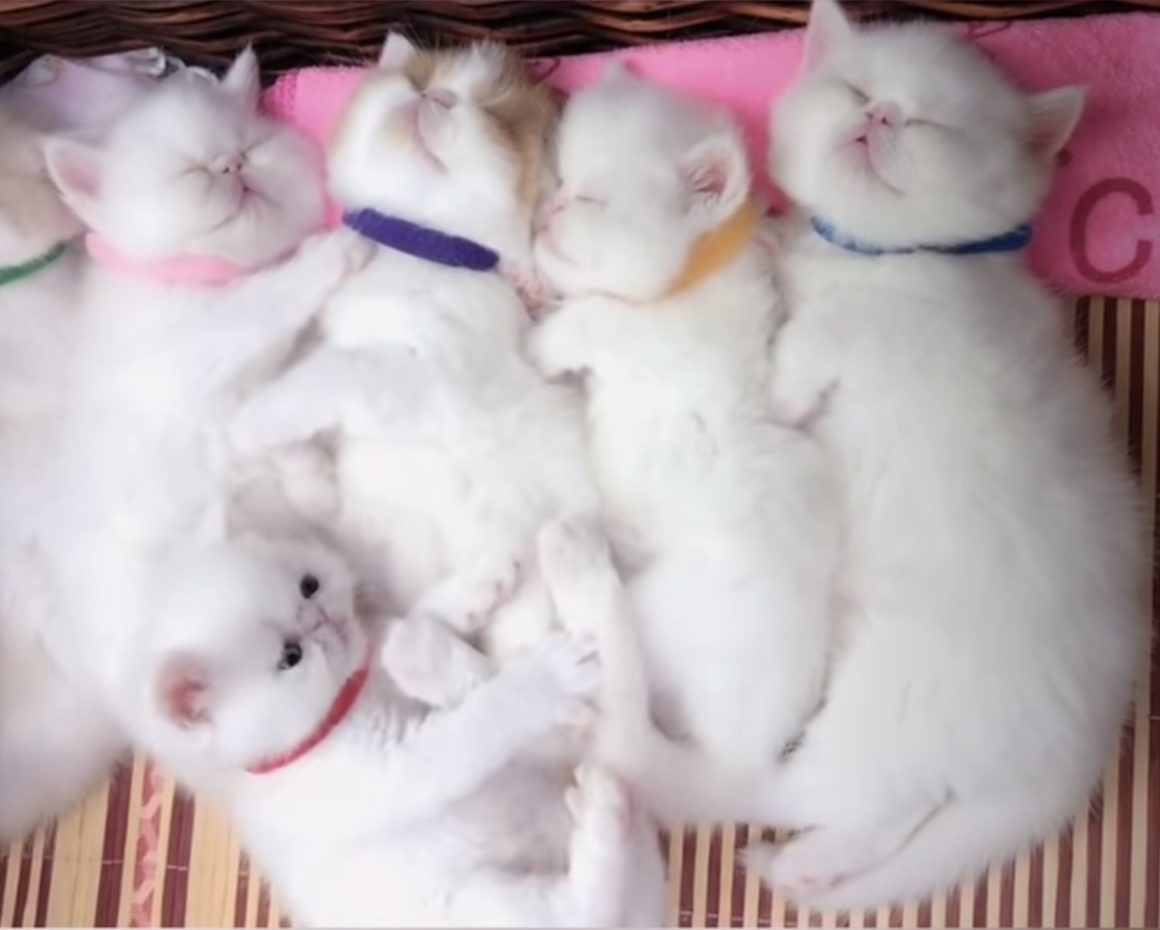 みんなで仲良く並んでお昼寝中の ふわふわした子猫さんたち。 それぞれ色違いの首輪をつけて 同じポーズで寝ているのがとっても可愛い! あれ?でも1匹だけ、赤い首輪をつけた子が 眠れずにウロウロ。 子猫「ねぇ〜起きて遊ぼうよ!」と みんなを起こそう... -