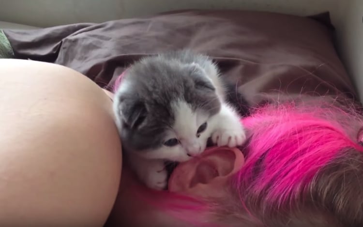 想像するだけで震える!耳たぶをチュパチュパする子猫。