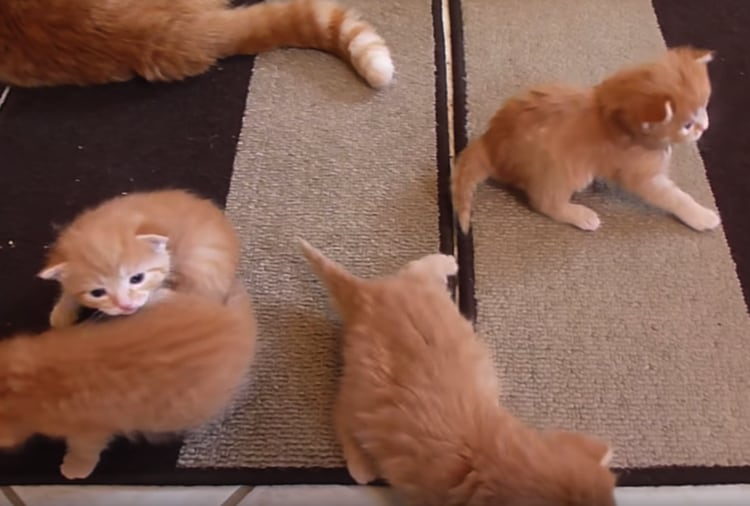 おしくらまんじゅう!よちよち歩く練習をする子猫。