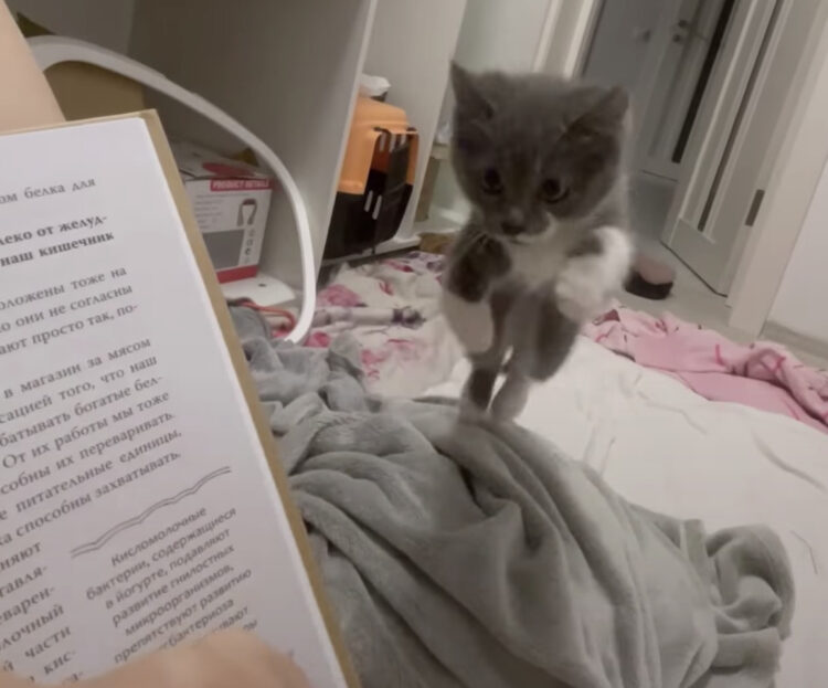 元気溢れすぎ!! 本を読んでいると子猫が…