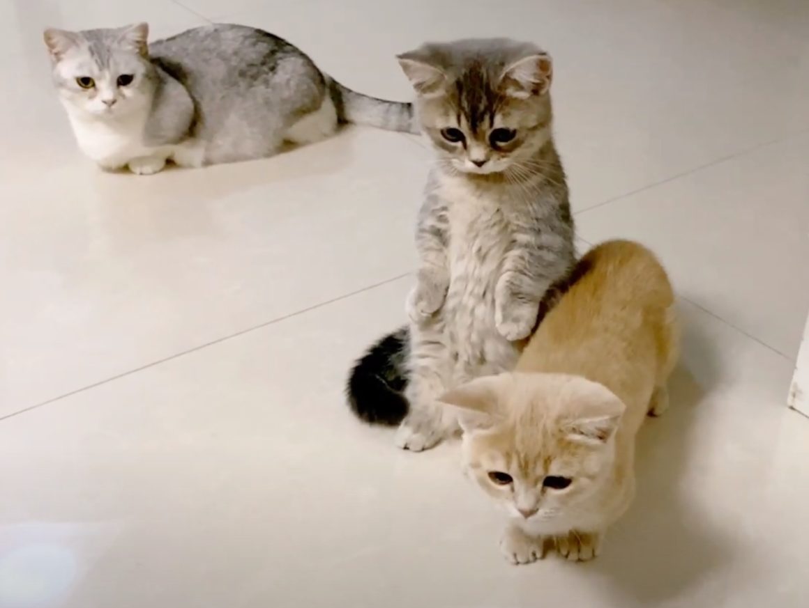 キャットタワーに挑戦する子猫たち。あと一歩が届かない!