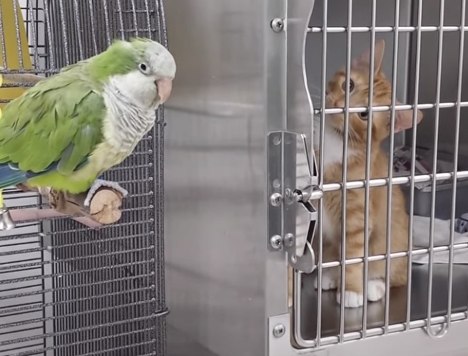 海外のペットショップで撮影された 猫さんの姿が面白いこちらの映像。 ケージに入っている猫さんは 隣にいる鳥さんのことが とーっても気になるようで、 体を斜めにして、覗き込むように 鳥さんの方をガン見! 猫「...この子はなんていう名前だろう?」と ... -