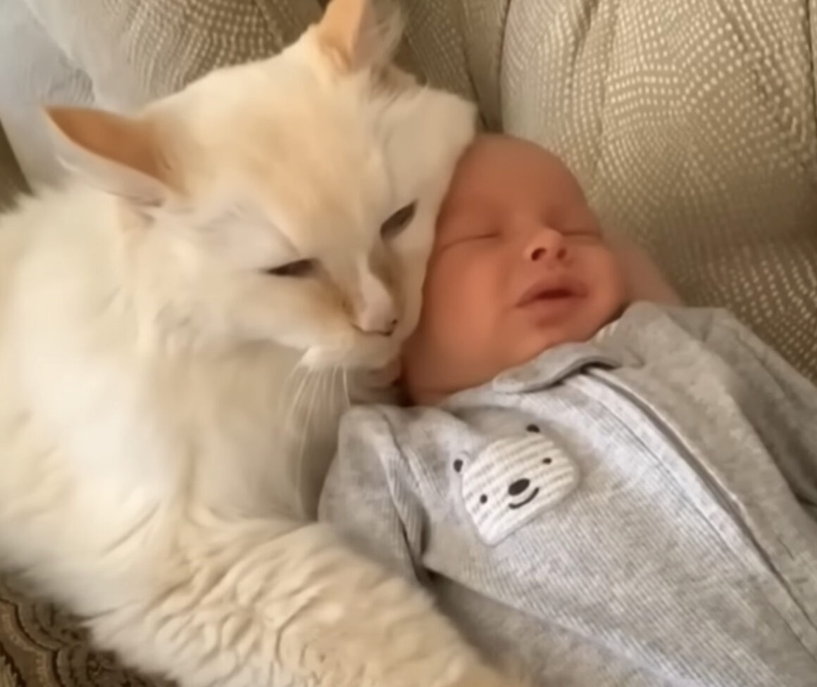 スヤスヤとベッドで寝ている赤ちゃん。 赤ちゃんをバックハグするように 後ろからそっと抱きしめているのは このお家で一緒に暮らしている猫さん♪ 体温が高い赤ちゃんにくっついているのが大好きなようで 赤ちゃんのほっぺに自分のほっぺをくっつけながら ...