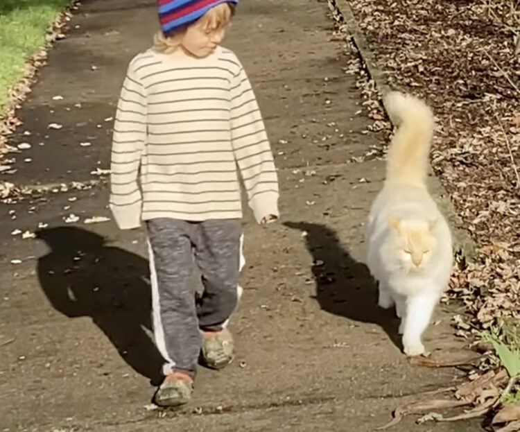 今日のお散歩も楽しいね♪ 猫と子どもの姿がほのぼのする♪