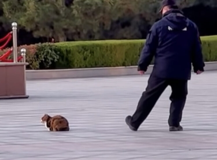 どうしても野良猫に触ってみたい男性、少しづつそ〜っと距離を縮めて…