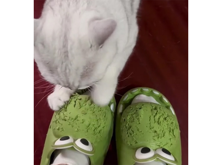 猫は爪のお手入れのためや、 気持ちを落ち着かせるために バリバリと爪とぎをします。 おうちの壁でバリバリされると困るので ほとんどの飼い主さんが爪とぎのグッズを用意しています。 こちらの猫さんの飼い主ももちろん爪とぎを用意♪ 恐竜のようなワニさ... -
