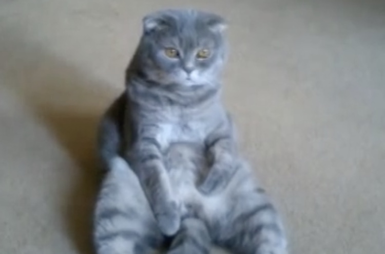 きれいなフォームのスコ座りでくつろいでいるスコティッシュフォールドの猫さん。 からの、ふわ〜〜と寝転がっちゃいます。そして飼い主さんが呼びかけてみると... ムクッ!見事なスコ座り、再び。 -